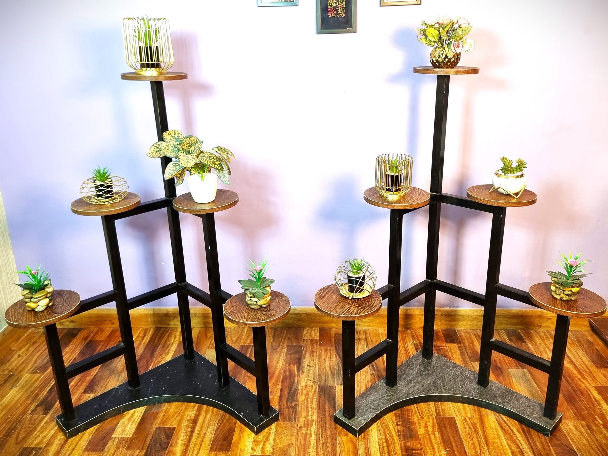 ✔ Strong Iron Frame Construction: Built with a durable 16-gauge iron pipe base and premium A-grade materials, the rack offers reliable stability and supports up to 9.9 kg for everyday decorative and storage use.