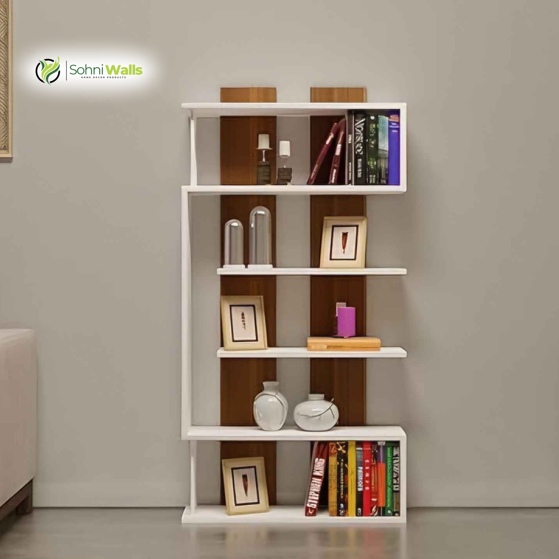 ✔ Ample Display Space: Large dimensions of 60" (H) × 24" (W) × 7" (D) provide plenty of room for books, decorative vases, photo frames, artificial or real plants, and other accents.